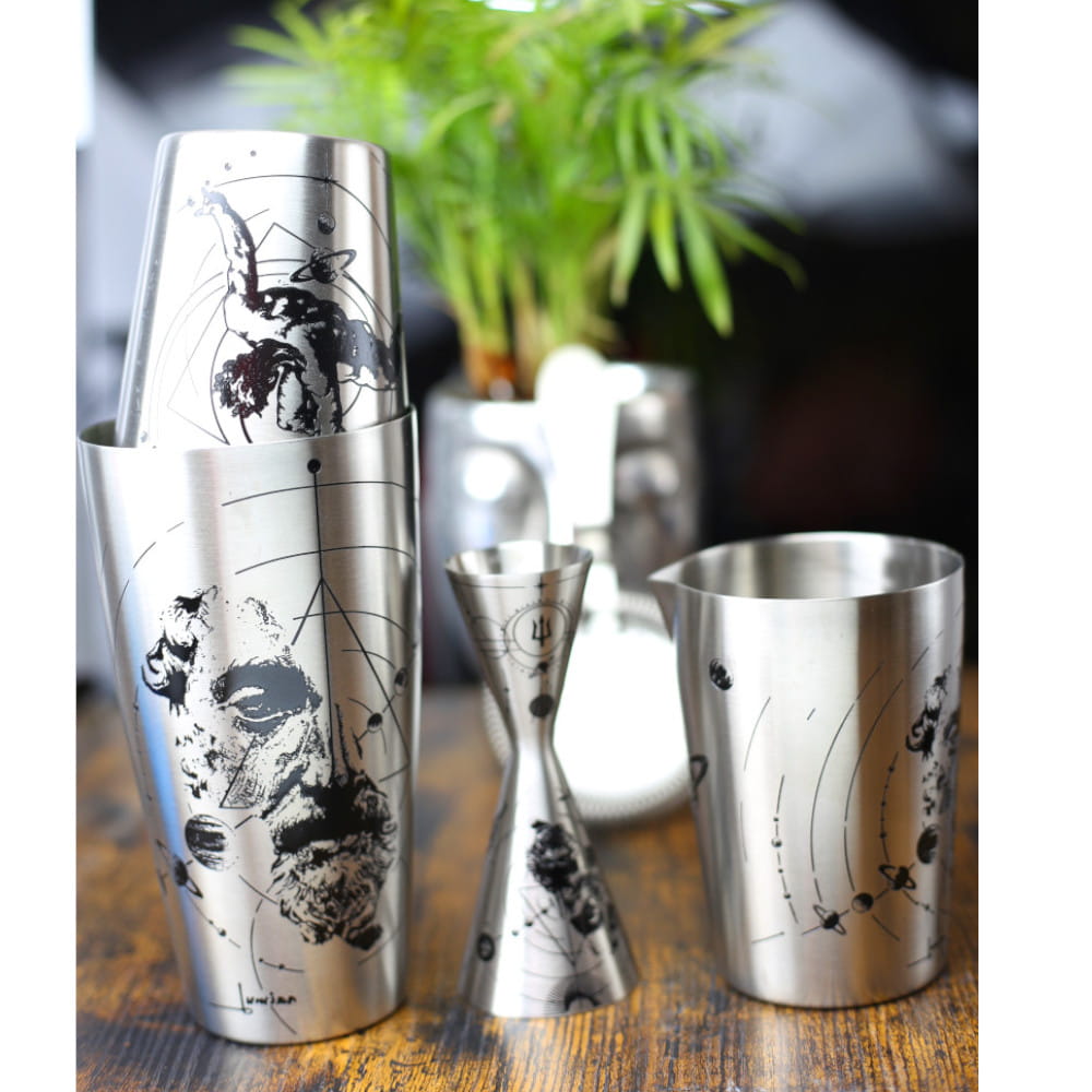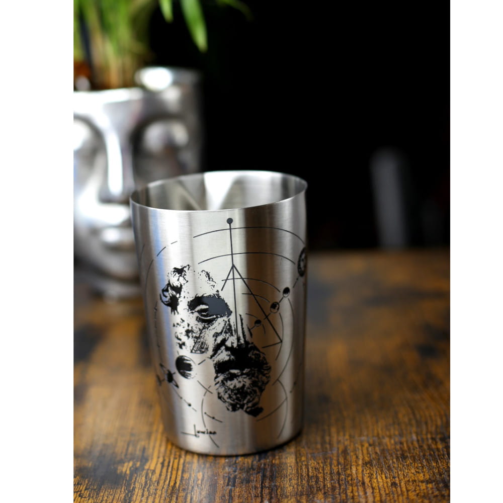 Inspirowane alchemią grawerowane grafiki na szklanicy barowej łączą sztukę i styl w niezwykły sposób!