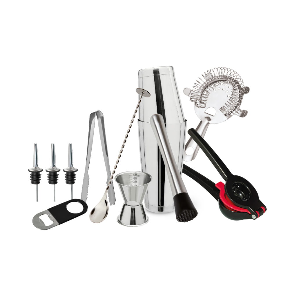 Zestaw barmański 12 elementów- idealny jako prezent w ładnym opakowaniu dla każdego początkującego lub profesjonalnego barmana do domowego barku, lub lokalu gastronomicznego.
