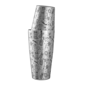 Shaker Tin Tin, 2-częściowy, Tiki, grawerowany, Urban Bar, stal nierdzewna