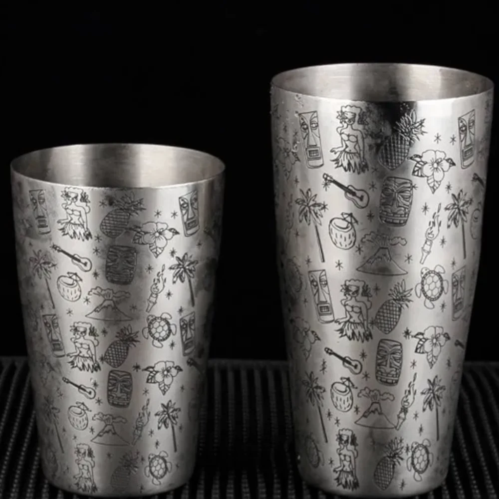 Shaker Tin Tin z grawerem w stylu Tiki – profesjonalizm, trwałość i egzotyczny design