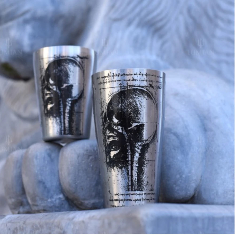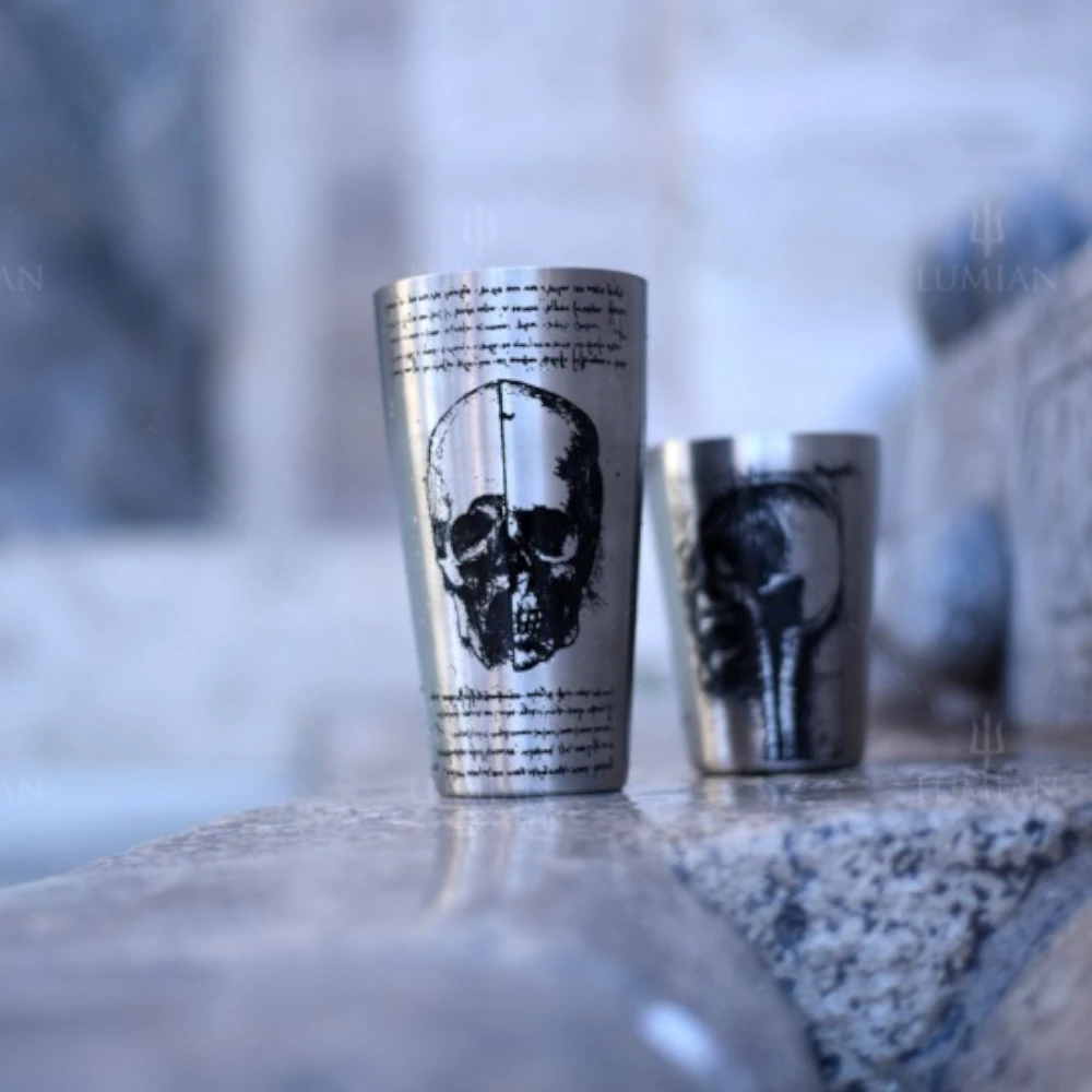 Każdy egzemplarz jest ręcznie zdobiony unikalnymi, ezoterycznymi symbolami, które splatają się z alchemiczną nauką mixologii.